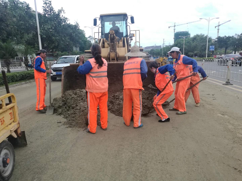 7月23日上午,集團(tuán)公司組織人員,并派出鏟車、清地車、高壓沖洗車等加強(qiáng)作業(yè),對(duì)臺(tái)風(fēng)過后的主次干道堆積泥沙進(jìn)行大沖洗,對(duì)散落垃圾、斷裂樹枝樹葉進(jìn)行全面普掃清運(yùn),對(duì)倒伏樹木及時(shí)扶正,加強(qiáng)垃圾清運(yùn),確保道路暢通整潔。截止發(fā)稿,集團(tuán)公司共出動(dòng)機(jī)械化清掃車輛28車次,各類垃圾壓縮車輛271車次,清運(yùn)垃圾851噸。