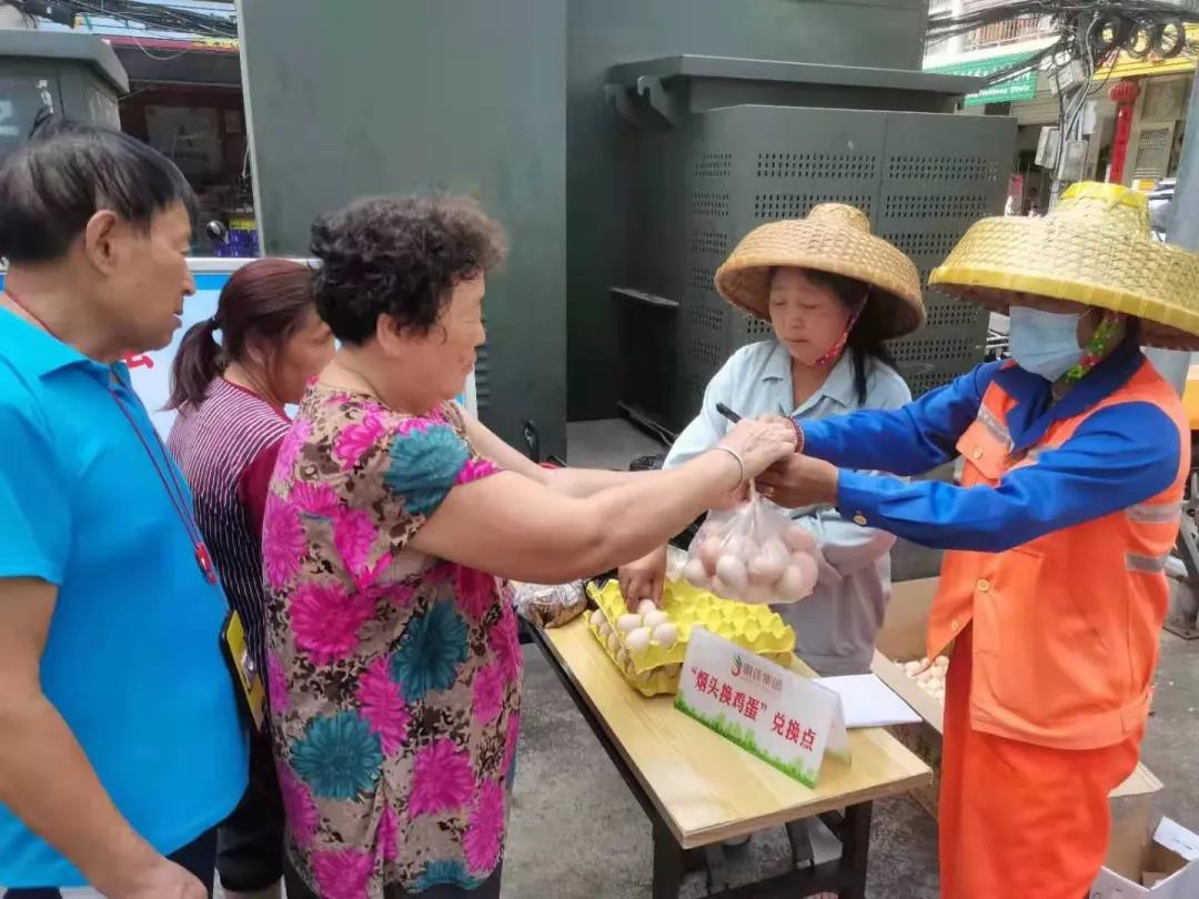 ▲開展“煙頭換雞蛋”環(huán)保宣傳活動(dòng)