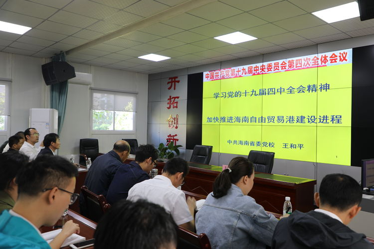 12月7日上午10:00時,一場主題為“學習貫徹黨的十九屆四中全會精神,推進海南自貿區(qū)(港)治理現(xiàn)代化”專題輔導,在明佳集團辦公大樓三樓多功能會議廳舉辦。此次專題輔導報告是明佳集團黨支部為了落實上級指示,學習宣傳貫徹黨的十九屆四中全會精神,以及省委書記劉賜貴宣講黨的十九屆四中會全精神時提出的要求,組織黨員干部集中學習,確保將黨的十九屆四中全會精神傳達至每一名黨員及一線員工。