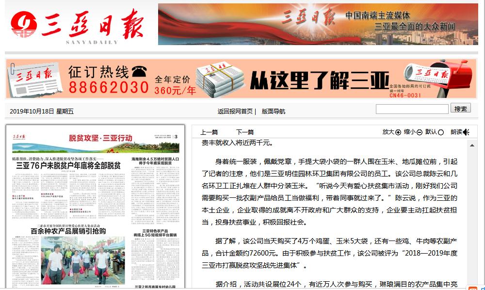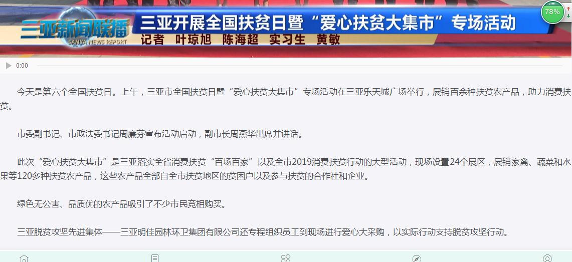 明佳集團(tuán)作為三亞的本土企業(yè),主動扛起扶貧擔(dān)當(dāng),投身扶貧事業(yè),積極回報社會。在此次大采購活動中,集團(tuán)員工在總裁陳云的帶領(lǐng)下,購買了4萬個雞蛋、玉米5大袋,還有一些雞、牛肉等農(nóng)副產(chǎn)品,合計金額約72600元。三亞日報和三亞新聞聯(lián)播分別對明佳集團(tuán)的愛心大采購活動進(jìn)行了報道。